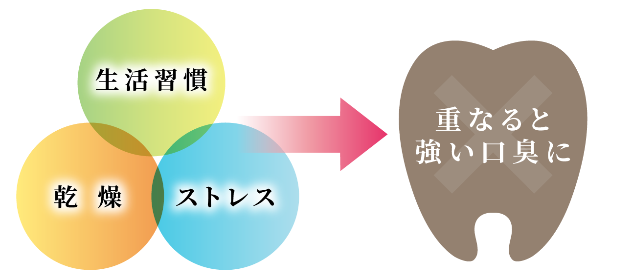 食事・睡眠・口呼吸などのクセが、口臭を引き起こす要因に。